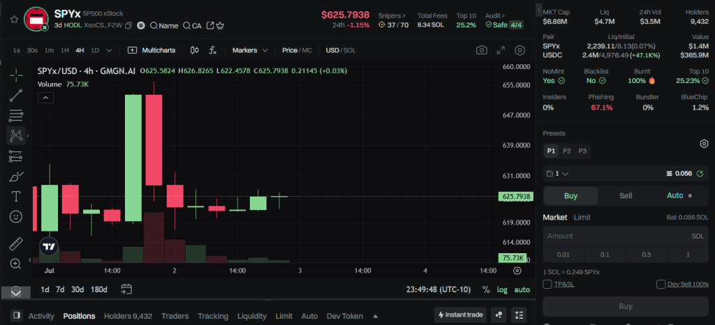📊 Trade xSPY (Synthetic S&P 500) 24/7 on Solana with GMGN.ai